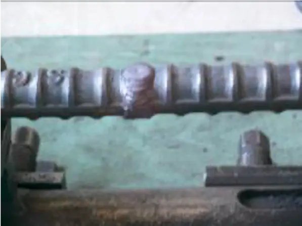 圧接部に欠陥がある場合は、圧接界面に「線状きず」「へこみ」「割れ」などを肉眼で確認できるため、圧接直後に全数の良否を判定できる工法です。